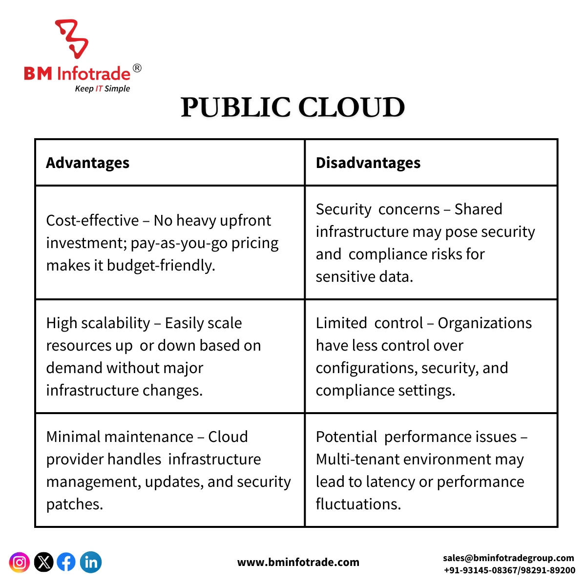 To determine scalability, an organization's growth trajectory and resource demands must be understood. Public Cloud Computing Benefits is ideal for enterprises with unexpected resource needs since it offers on-demand scalability.