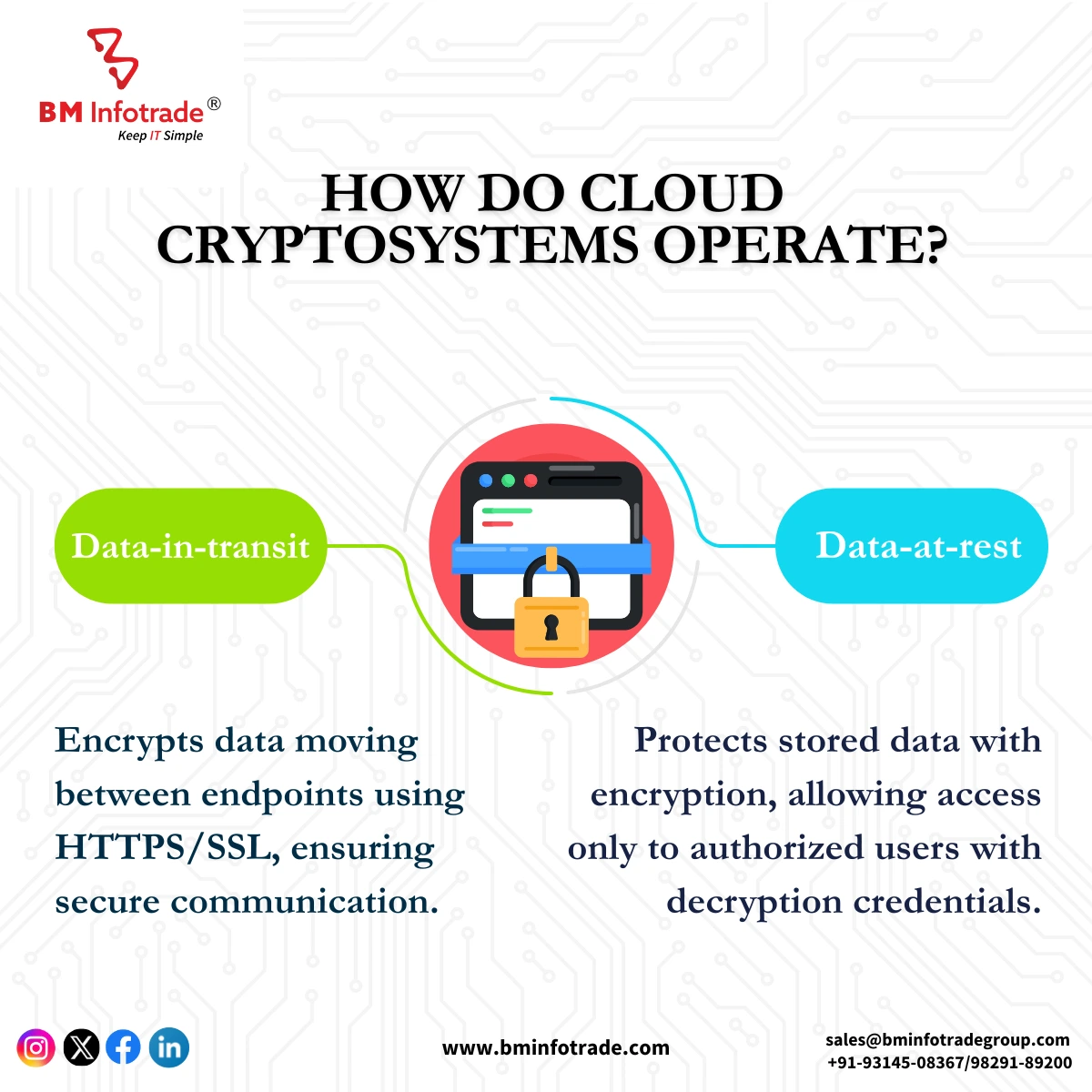IT services can now be accessed online by businesses thanks to cloud computing, which eliminates the need for on-site servers. The company is exposed to a variety of cyber threats and data breaches due to cloud computing services, though. One way a business can secure its data and defend itself from online attacks is through cloud cryptography. In order to protect data after it has left the company's business IT system, cloud encryption is prudent. By doing this, it is guaranteed that the data is secure throughout its journey through cloud computing services. Instead of securing the places where the data is stored, encryption helps protect the data itself.
