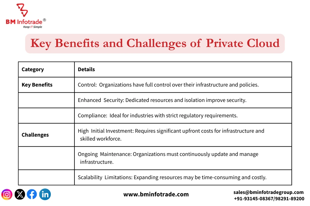- Initial Investment: A private cloud may need a large initial investment in infrastructure, software, and specialised workers.