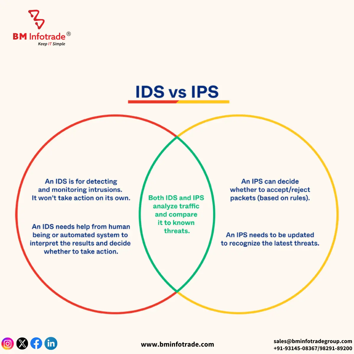 Intrusion Detection Systems (IDS) and Intrusion Prevention Systems (IPS) are considered to be the building blocks of today’s network security systems. IDS is primarily concerned with the detection of threats or bringing timely alerts, action is what bypasses all potential threats to the property in real-time hence it is termed IPS. Jointly they offer a complete umbrella cover for any threats and insecurities on the network through active monitoring and response discovered in the shortest time possible.