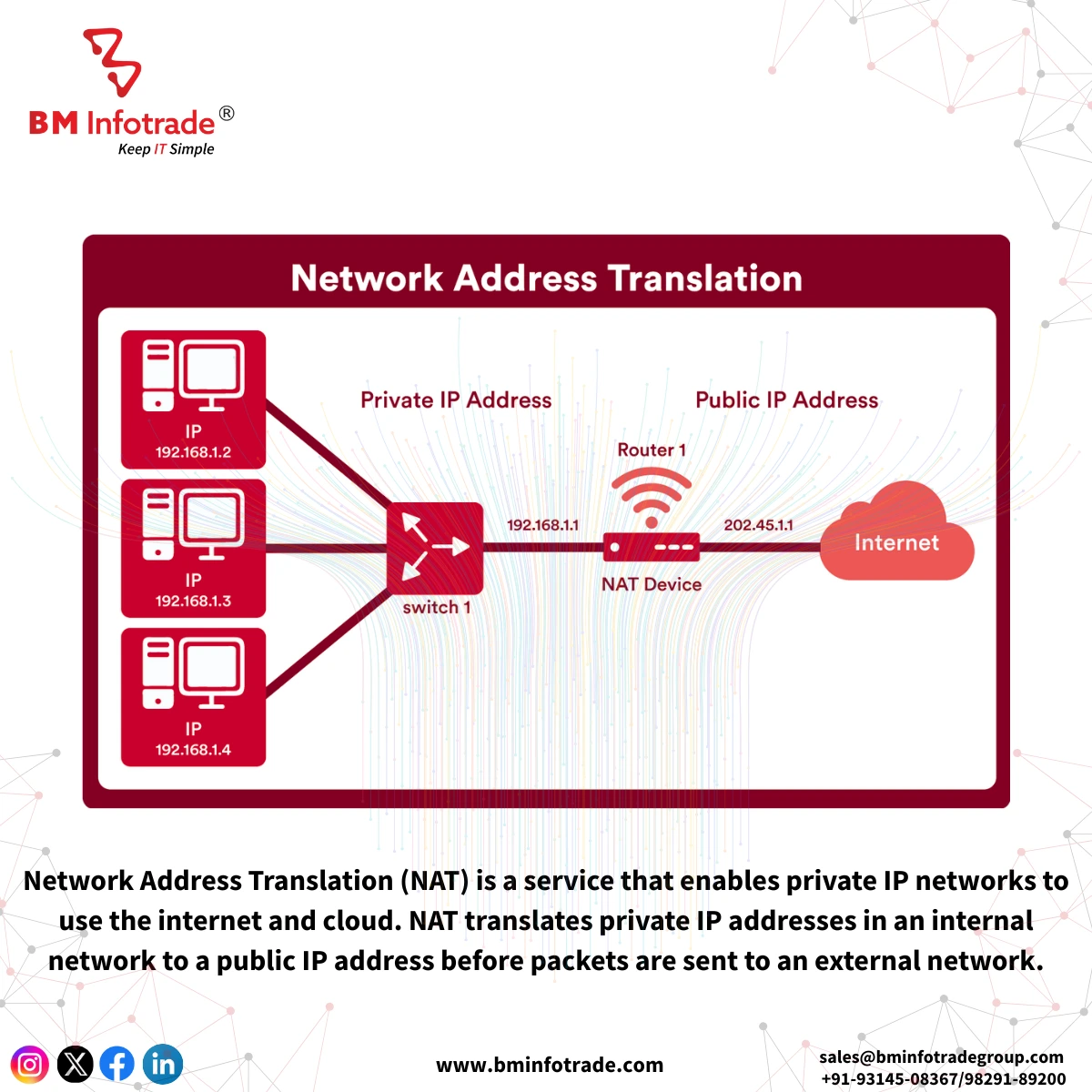 NAT is a network addressing method that allows for the modification of an IP address used in a local area network into a few or a singular global IP address used for data communication with outside networks, such as the Internet. NAT saves the scarce supply of IPv4 addresses and provides additional privacy by concealing internal IP addresses.