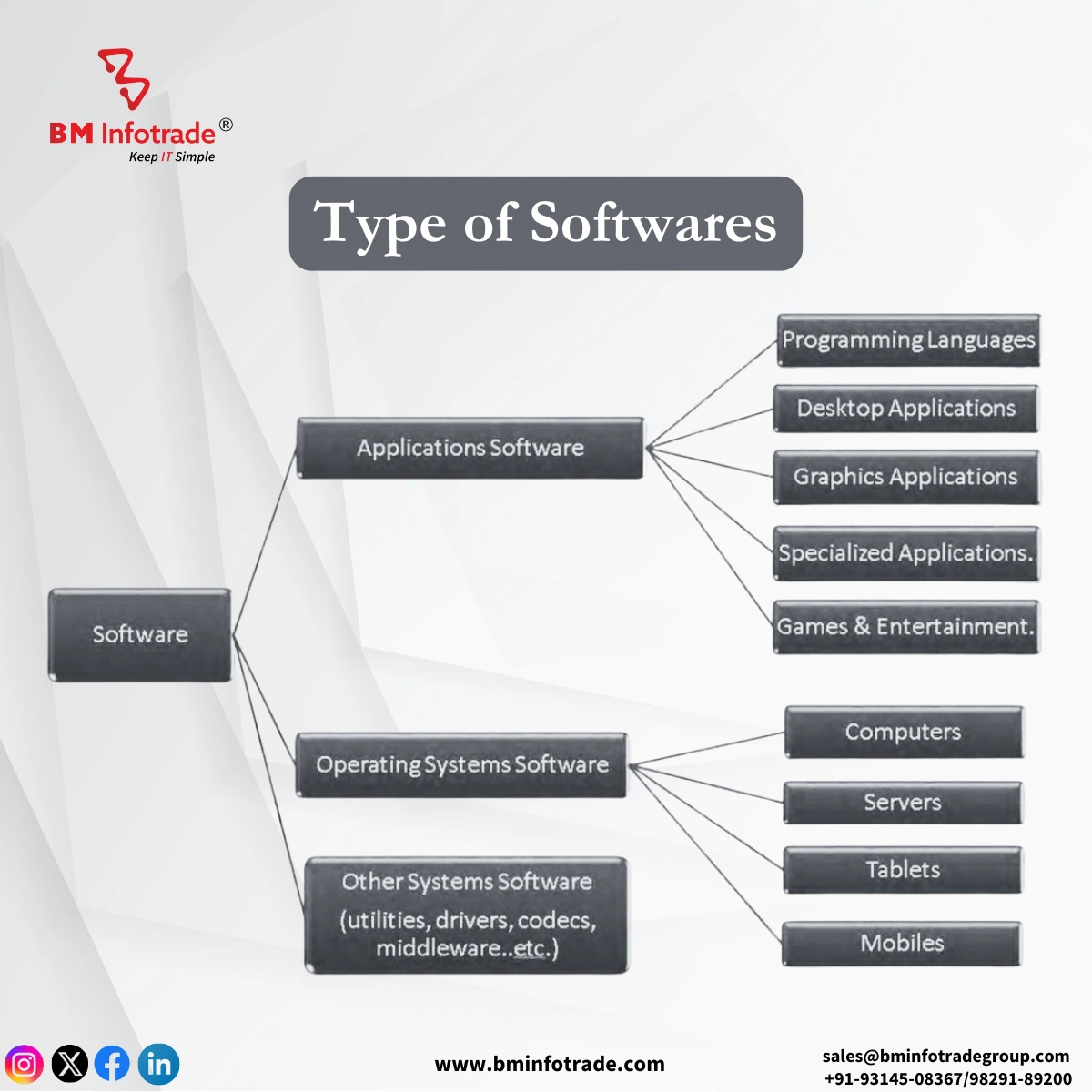 ERP systems combine key operational areas like finance, human resource management, supply chain control, manufacturing process automation, or customer relationship management into one integrated platform that provides real-time visibility across the business. Thehttps://www.bminfotrade.com/solutions/software-productsy streamline operations and enable data-driven decision-making through better information accessibility. SAP ERP; Oracle ERP Cloud; Microsoft Dynamics 365; and NetSuite are some examples.”